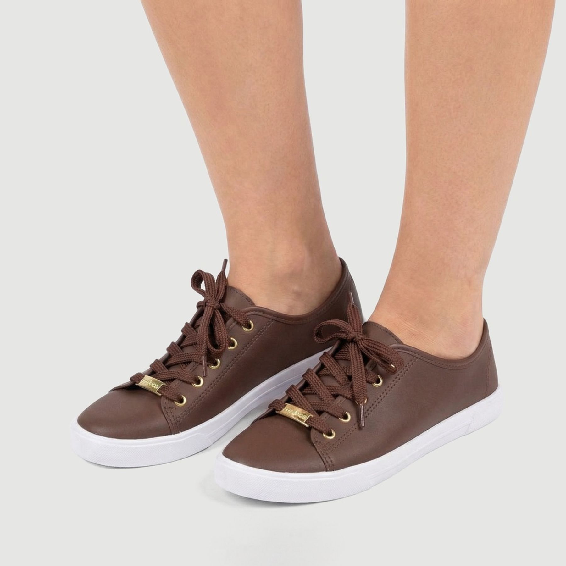 Tênis Feminino Casual De Amarrar com Ilhós Dourados Marrom - Moleca