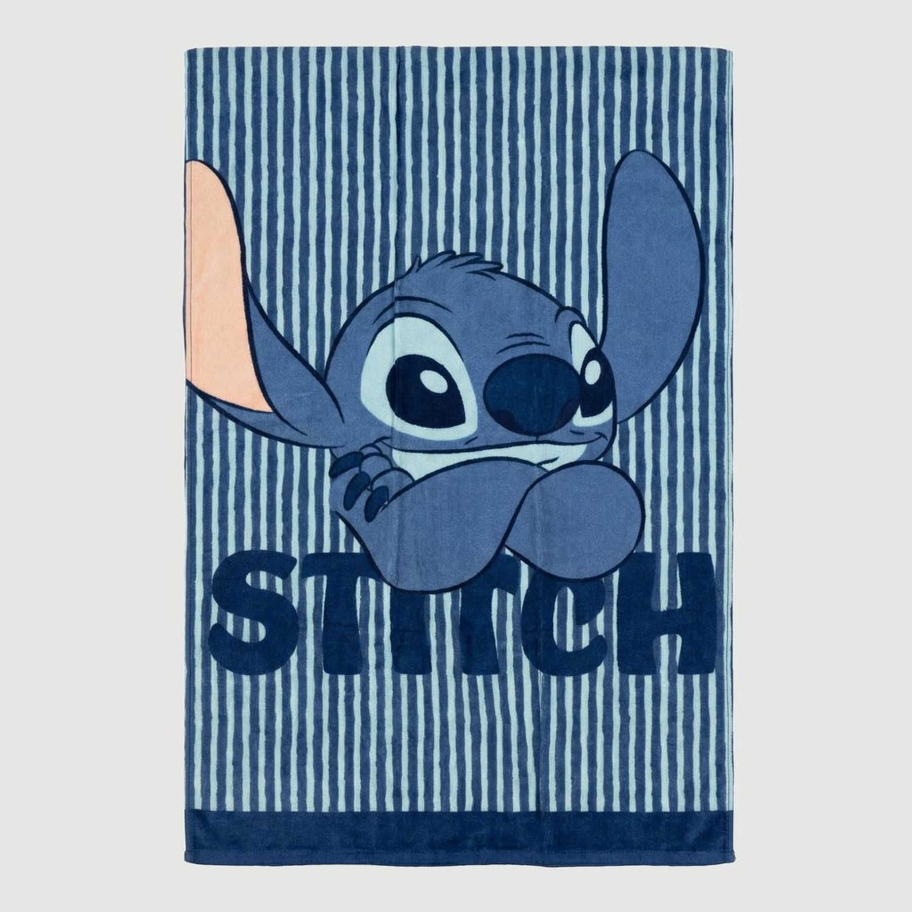 Economia de R$ 29,00A toalha de banho aveludada Disney Lilo & Stitch traz o Stitch em estampa centralizada com a escrita “STITCH” em destaque, ideal para deixar o banho mais divertido. Com tons de azul e fundo listrado vertical, possui barras lisas em azul escuro nas extremidades para um contraste moderno. Confeccionada em composição mista (50% algodão e 50% poliéster) e com aspecto de toalha felpuda, é uma ótima opção para quem busca maciez e um produto licenciado para a rotina. Conteúdo da embalagem: 1 toalha de banho.