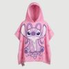A estampa traz o Stitch centralizado, com fundo rosa e corações, em um visual alegre para a rotina das crianças. Conta com barra reta e capuz para deixar o pós-banho mais aconchegante. Conteúdo da embalagem: 1 poncho com capuz.