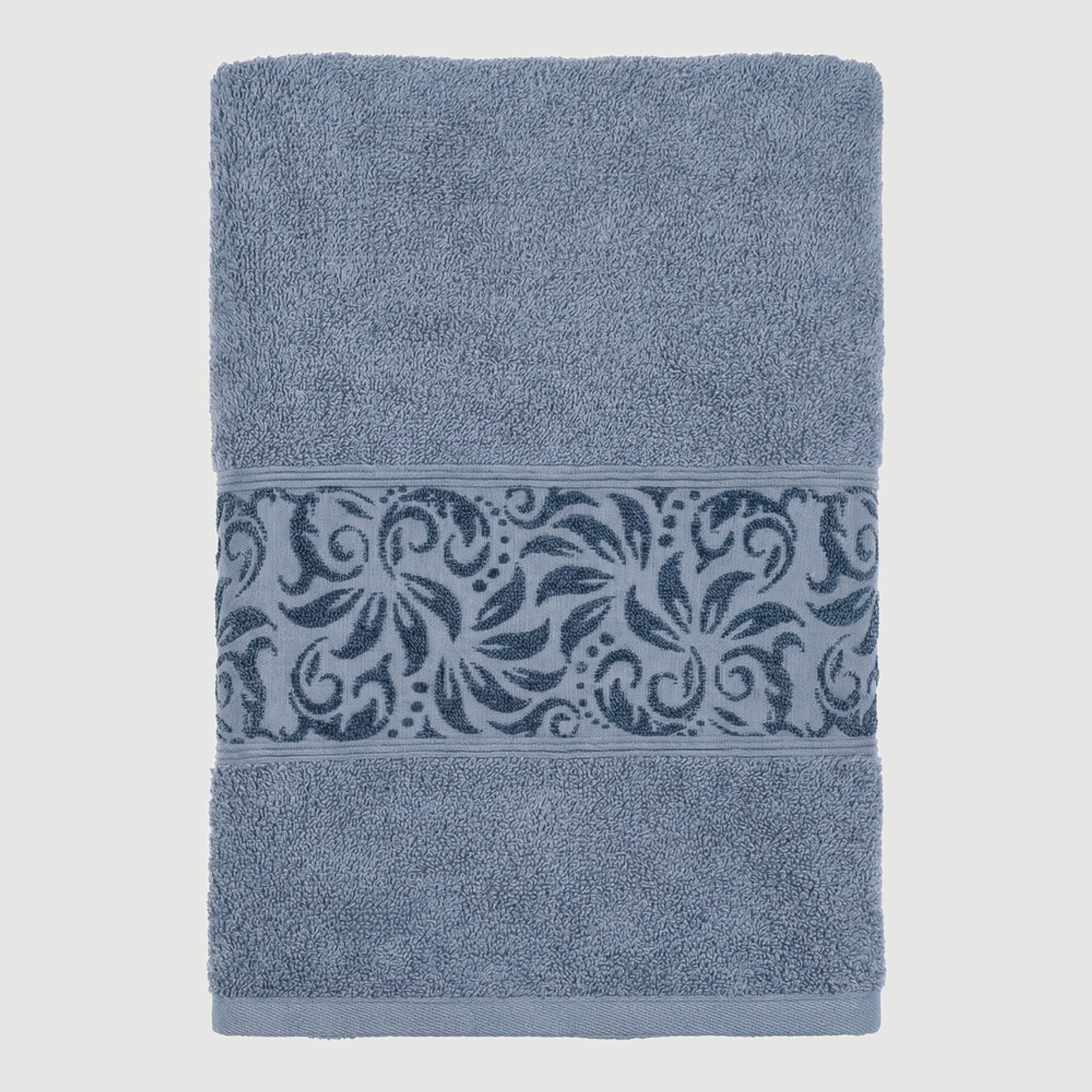 O visual é discreto e elegante, com faixa central decorativa em jacquard com arabescos e folhas em tom sobre tom, além de barra lisa nas extremidades, valorizando o acabamento. Produto unissex indicado para público adulto.