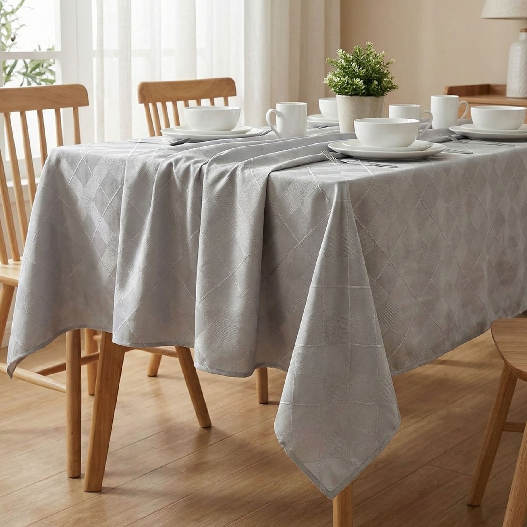 Toalha De Mesa Retangular 6 Lugares Wevans Cinza