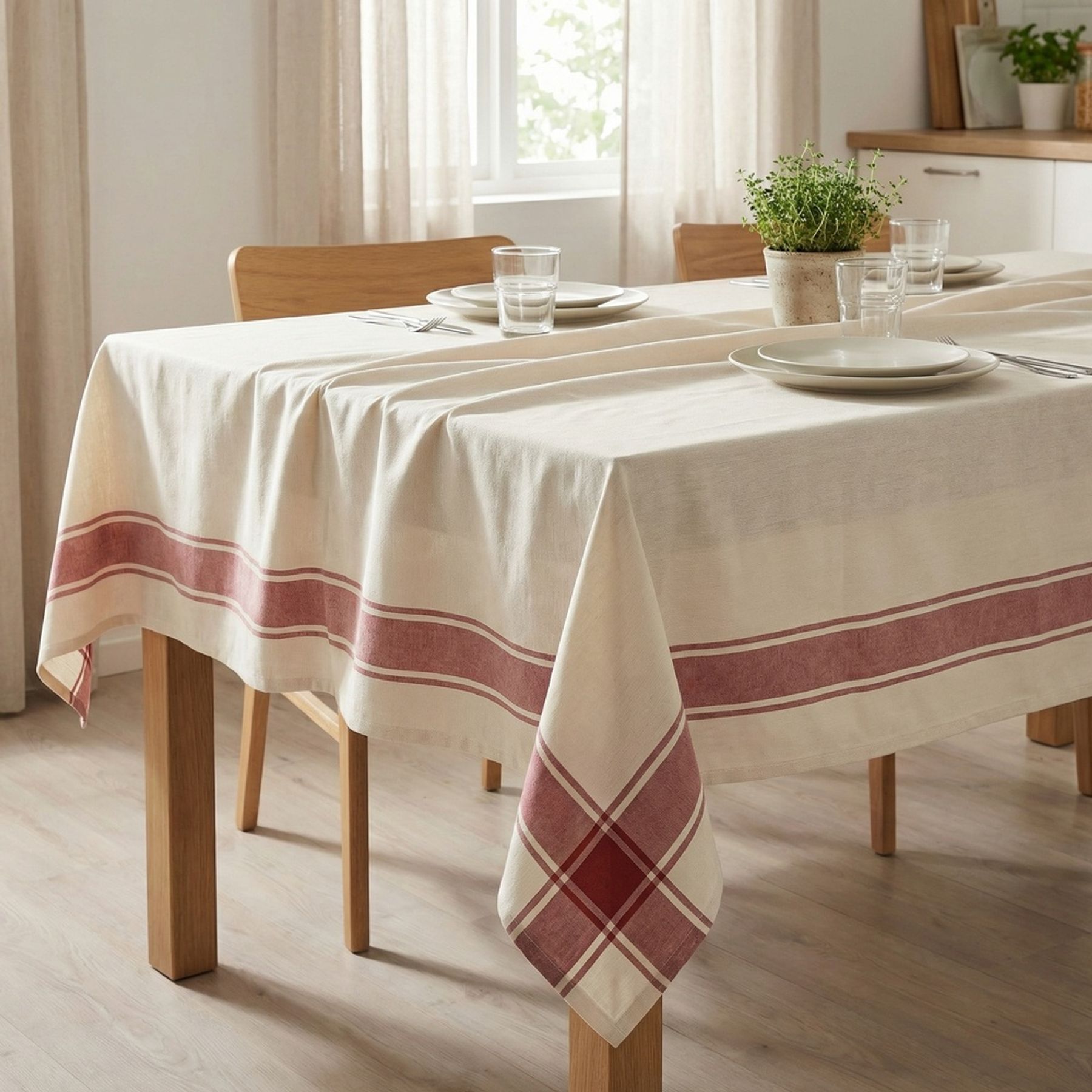 Toalha de Mesa 1,40 x 2,10 m com Moldura Xadrez Bege 100% Algodão - Pernambucanas Casa