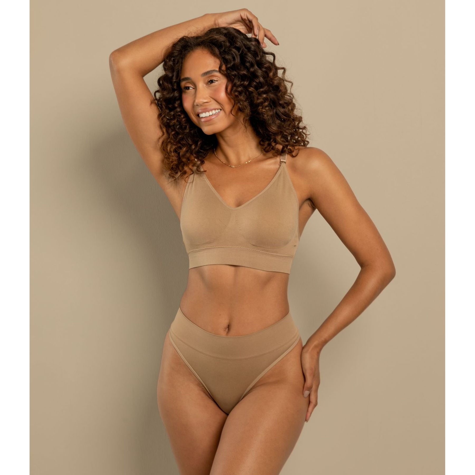 Sutiã Top Feminino Sem Costura Canelado Liso Marrom - Uniq