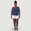 Colete Jeans Feminino com Amarração Laços Bordados Azul - Ink