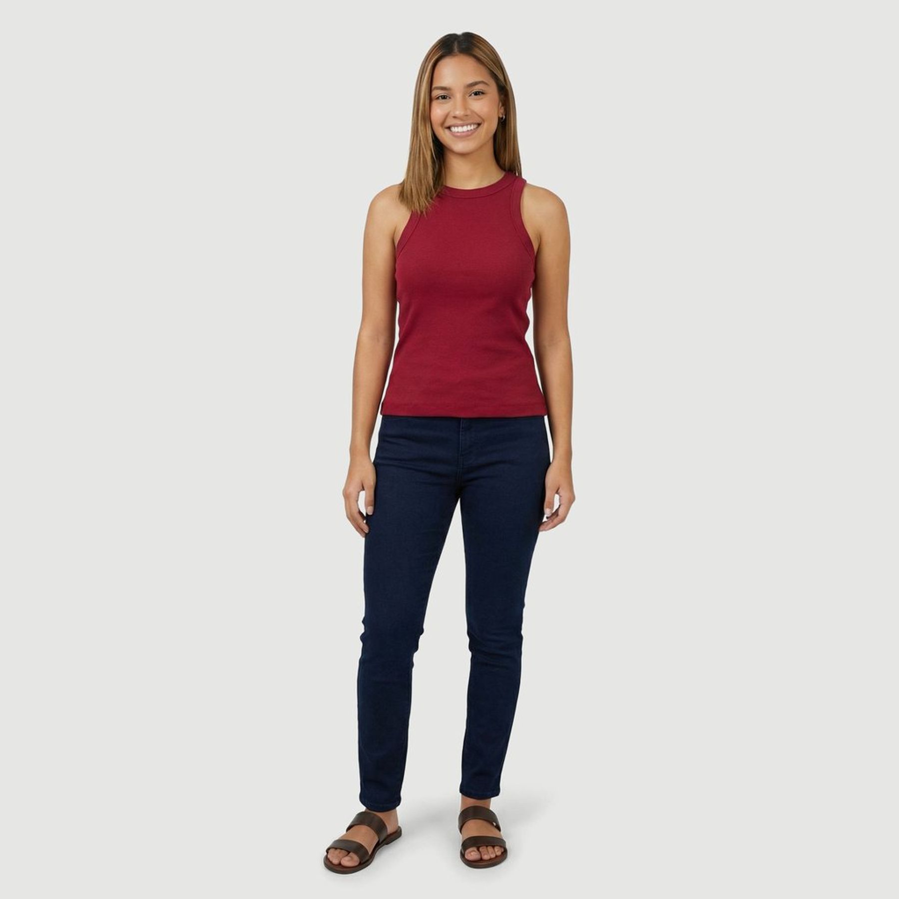 Com cor lisa vermelha e visual minimalista, tem decote fechado com gola redonda, cava americana e barra simples, ideal para usar sozinha ou em sobreposições. Conteúdo da embalagem: 1 blusa regata.