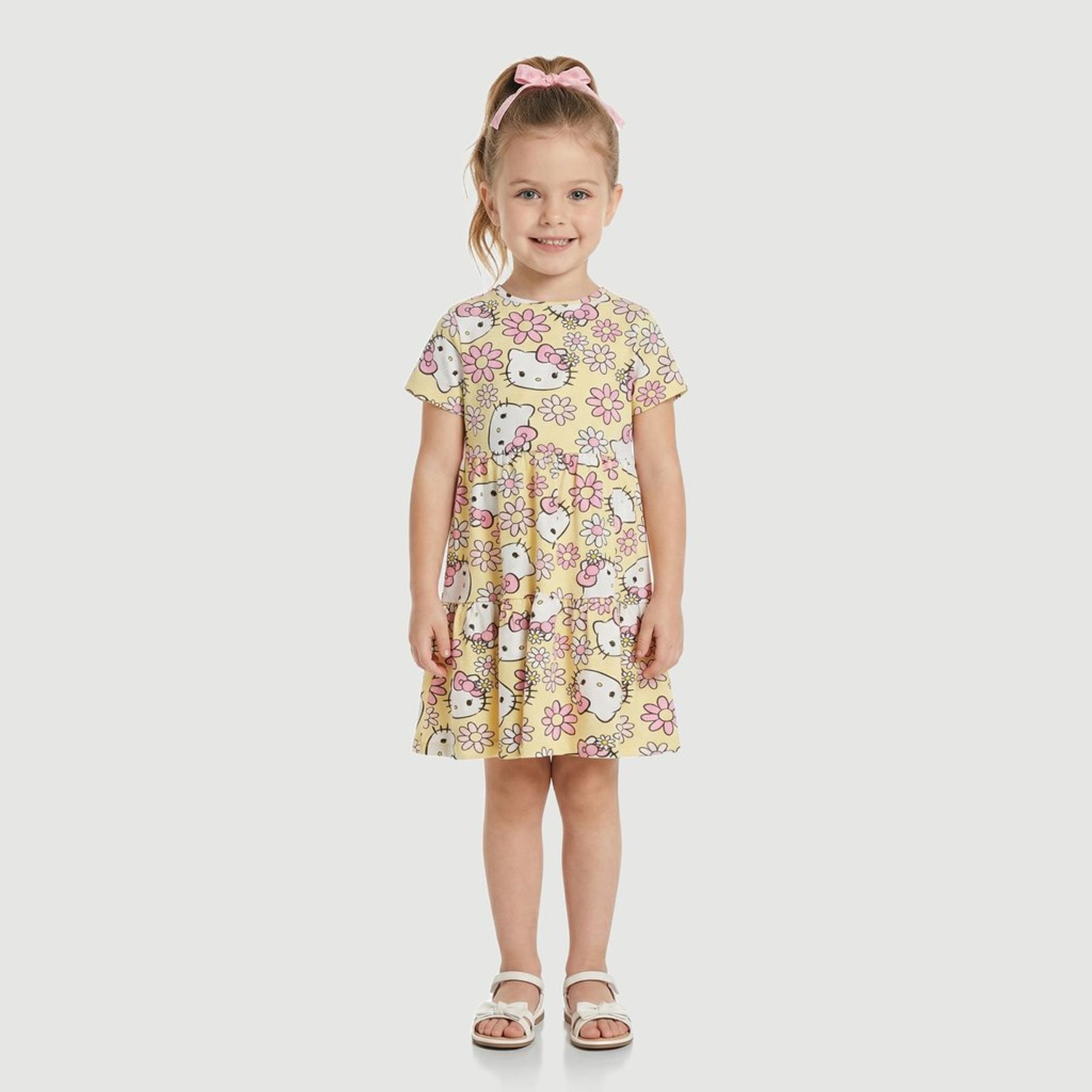 Vestido Infantil Manga Curta Estampado Select Amarelo