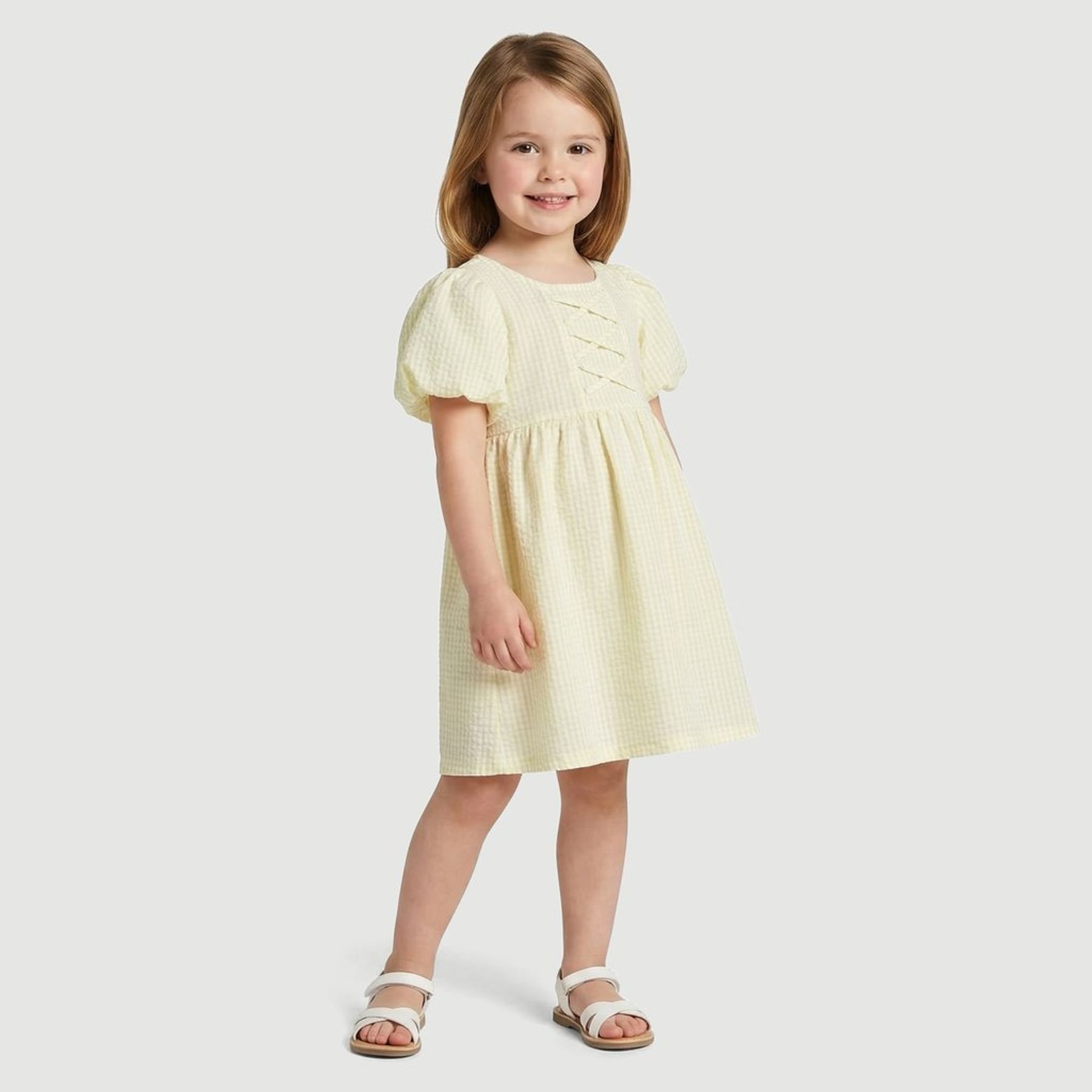 Vestido Infantil Manga Curta Estampado Select Amarelo