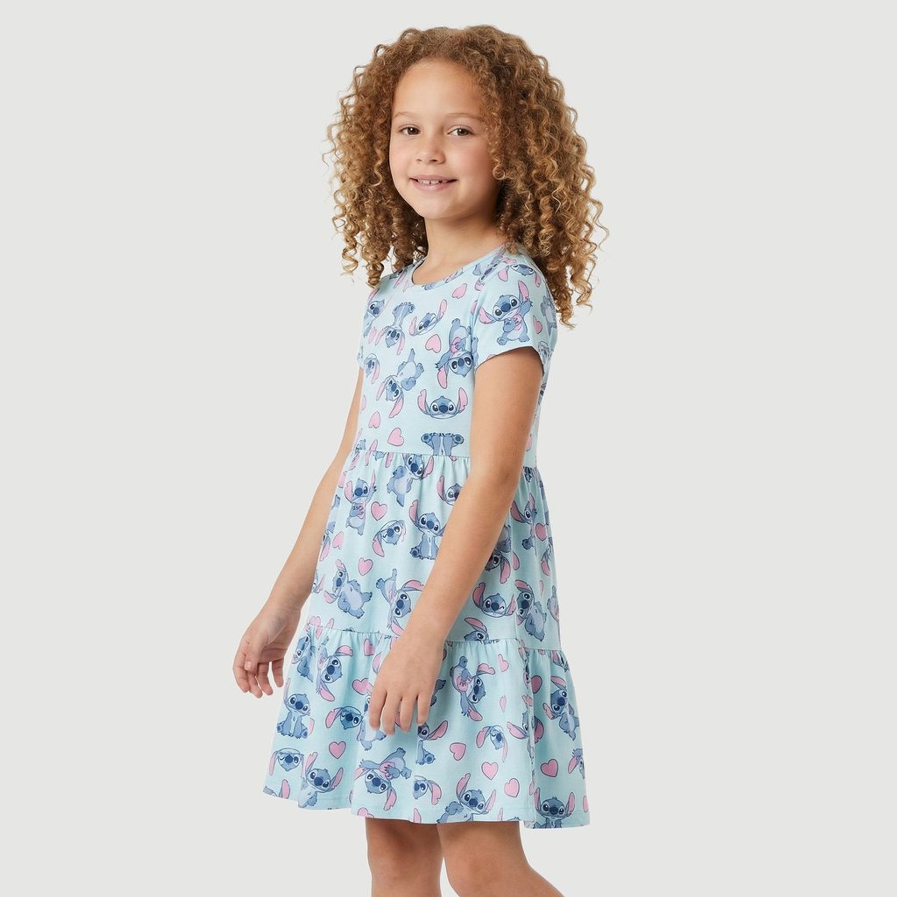 Vestido Infantil Manga Curta com Tule Stitch Azul - Disney