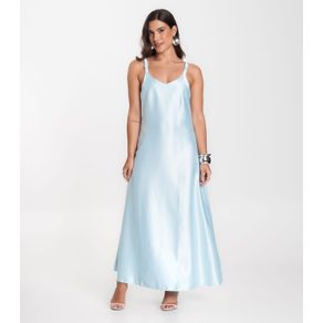Vestido Longo Feminino De Cetim E Alcinha Select Azul