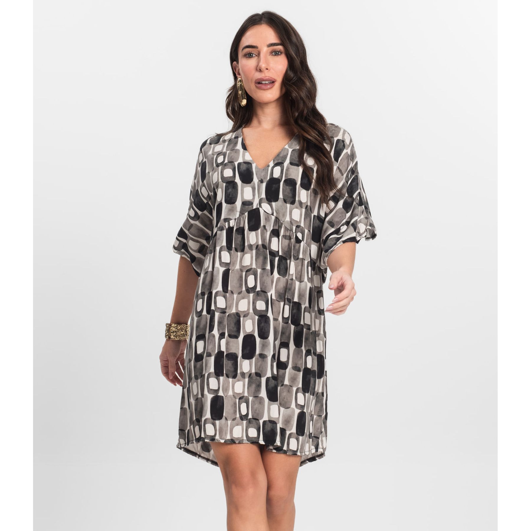 Vestido Feminino Bege Estampado Urbano