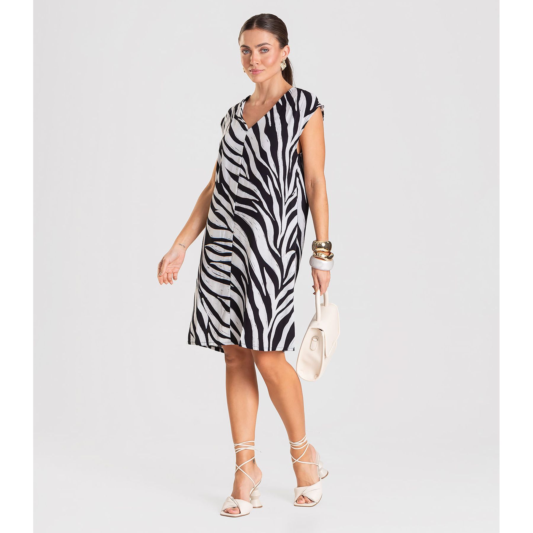 Vestido Feminino Midi Básico Canelado Listrado Preto - Viva