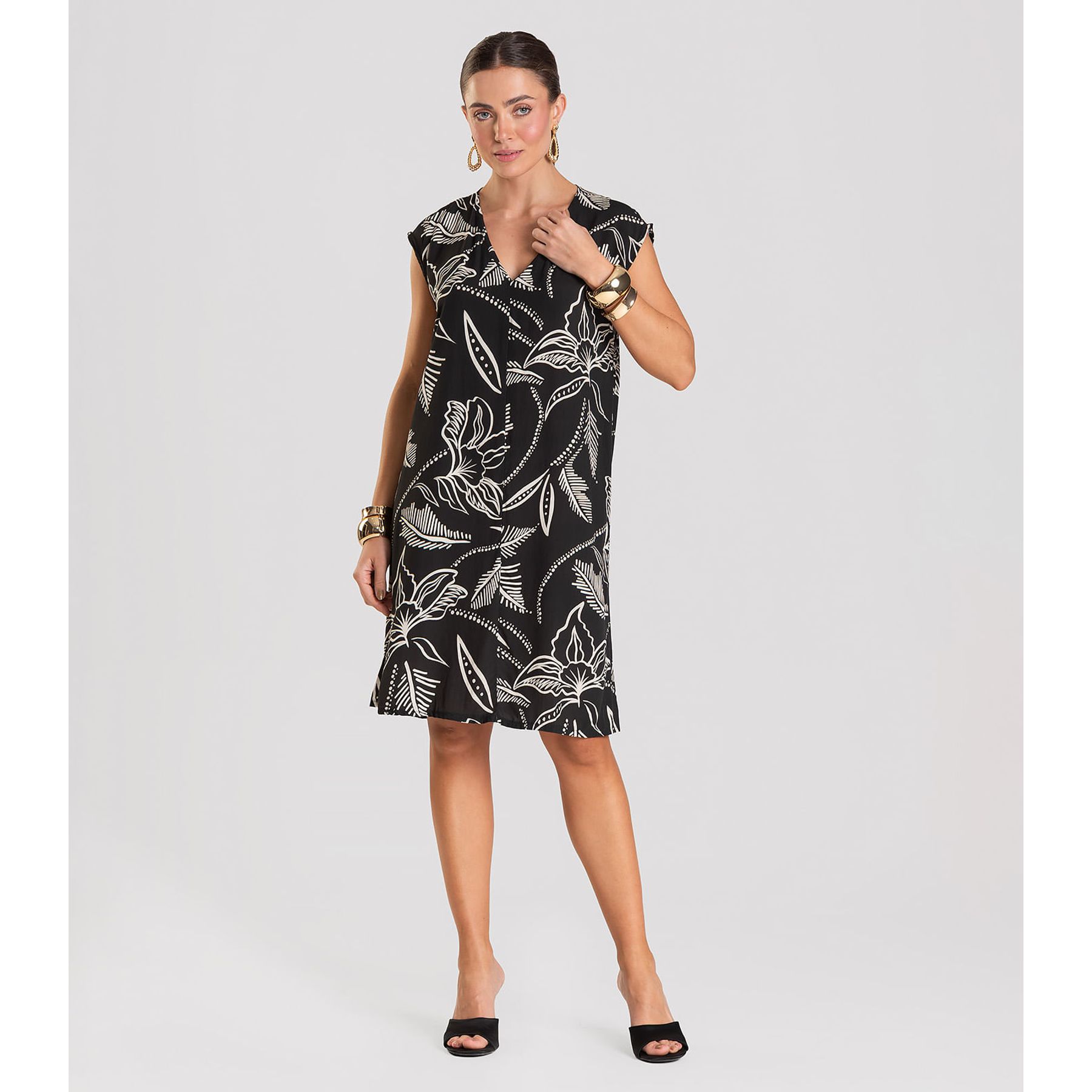 Vestido Curto Estampado Feminino Rovitex Preto