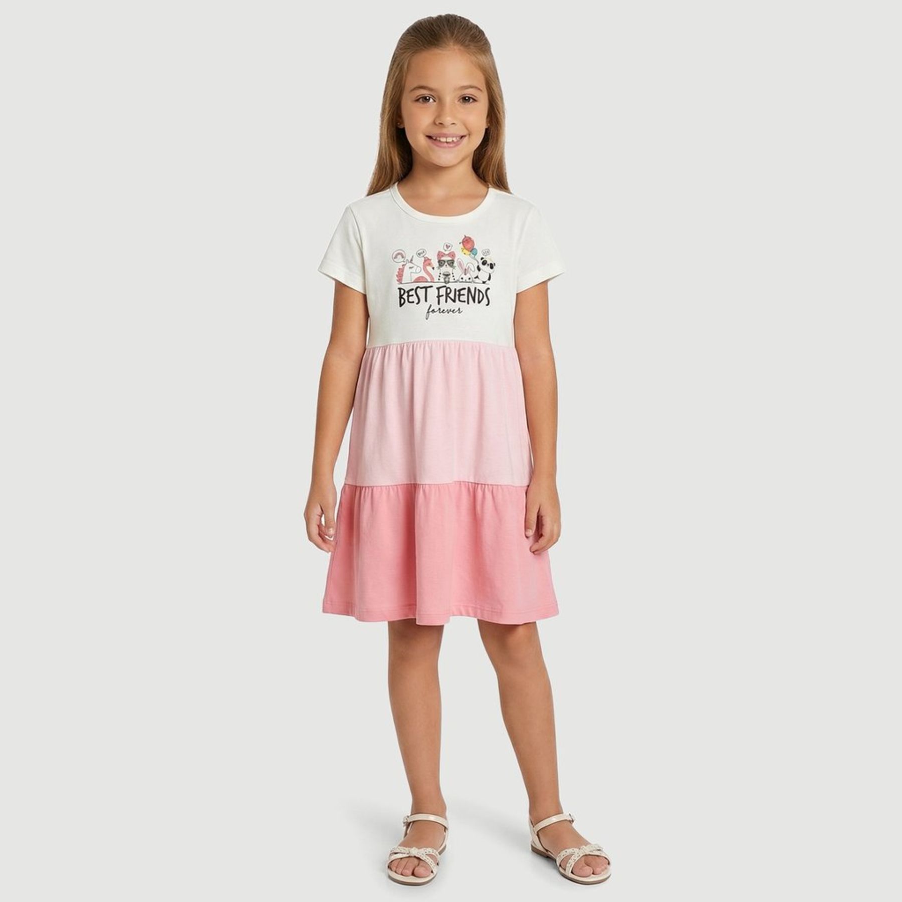 Vestido Infantil Manga Curta Estampado Select Rosa