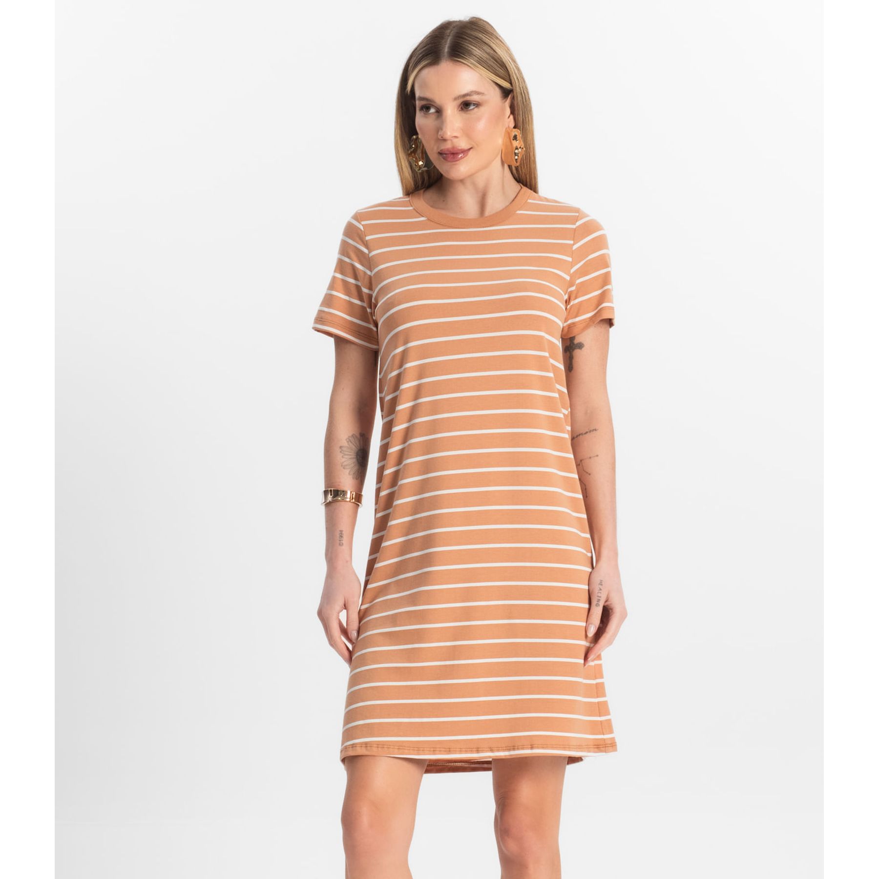Vestido Fem Casual Manga Curta Caramelo - Viva Casual