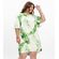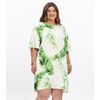 Vestido Feminino Longo Decote Quadrado com Lastex Estampa Folhagens Verde - Viva