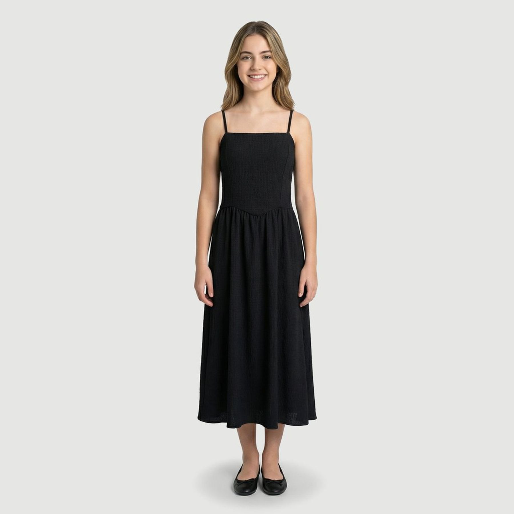 Economia de R$ 10,00O vestido feminino longo liso preto Love Trend é uma opção versátil para diferentes combinações. Com visual minimalista, tem decote reto, alças finas reguláveis e modelagem solta com caimento fluido.