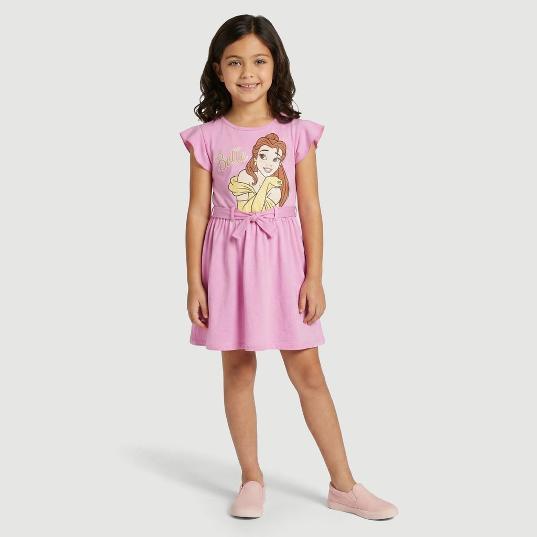A estampa frontal centralizada da Bela com a escrita “Belle” destaca o visual e reforça o licenciamento oficial. Para completar, conta com faixa do próprio tecido com laço na cintura, deixando o look ainda mais charmoso.