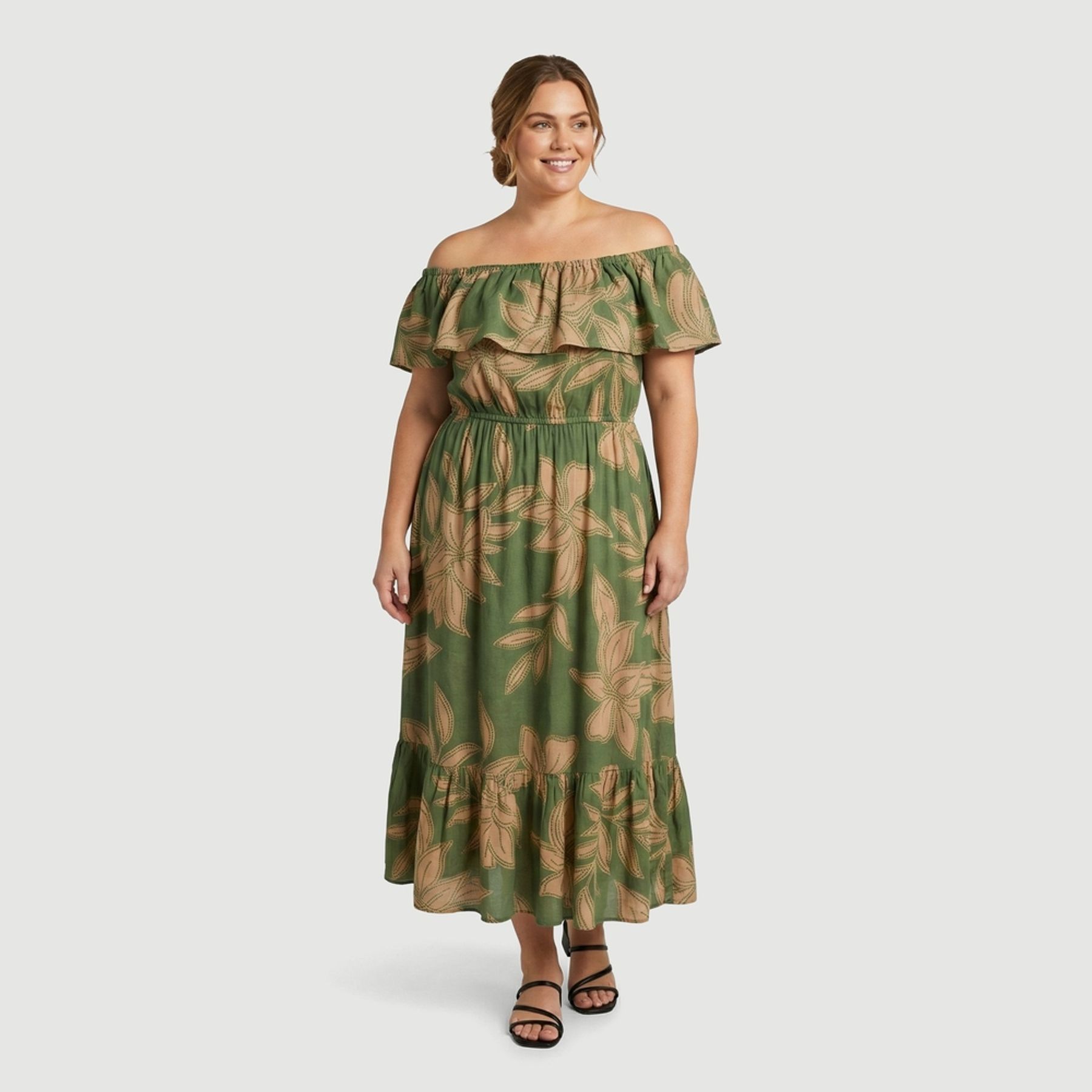 Economia de R$ 61,00Vestido feminino longo Viva Plus confeccionado em 100% viscose, com caimento leve e fluido para acompanhar passeios, viagens e momentos de lazer. O decote ombro a ombro com elástico e babado destaca a parte superior, enquanto a manga curta com babados e o elástico na cintura ajudam a definir a silhueta com praticidade.