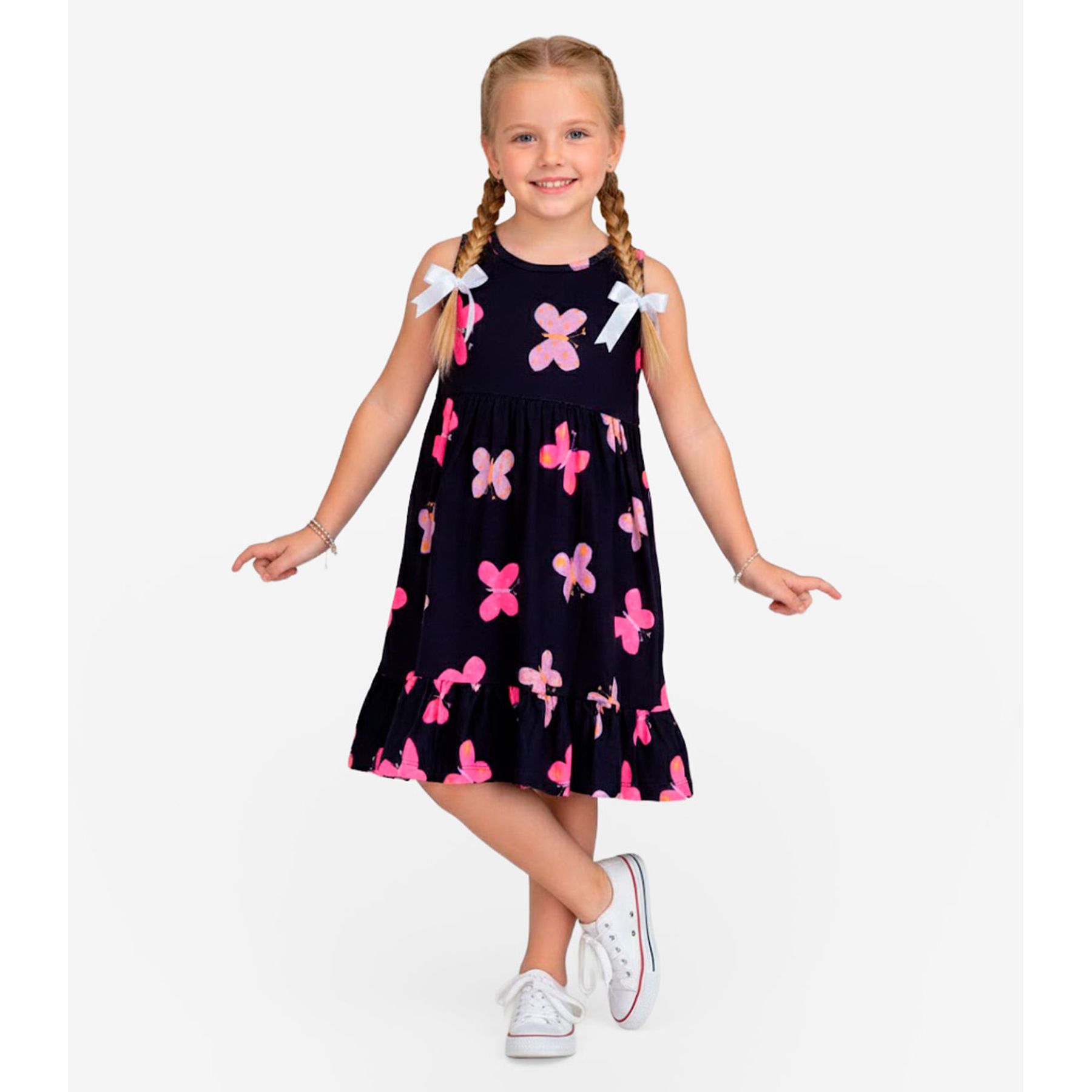 Vestido Infantil Manga Curta Estampado Biju Kids Rosa