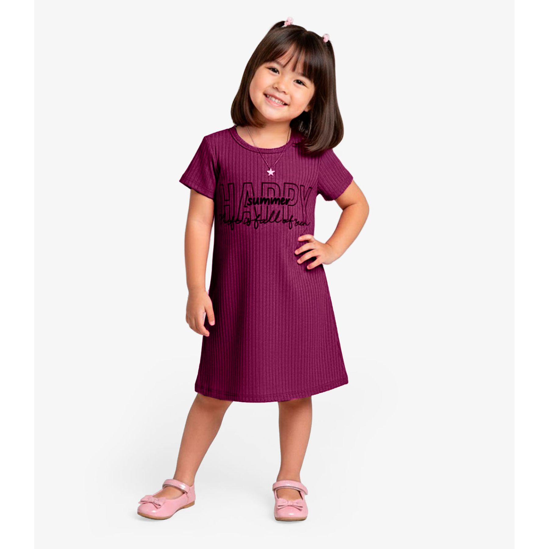 Vestido Infantil Manga Curta Estampado Biju Kids Rosa