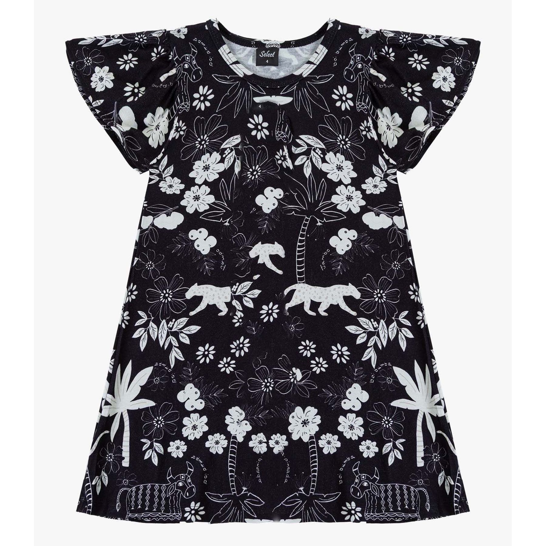 Vestido Infantil Manga Curta Estampado Biju Kids Azul
