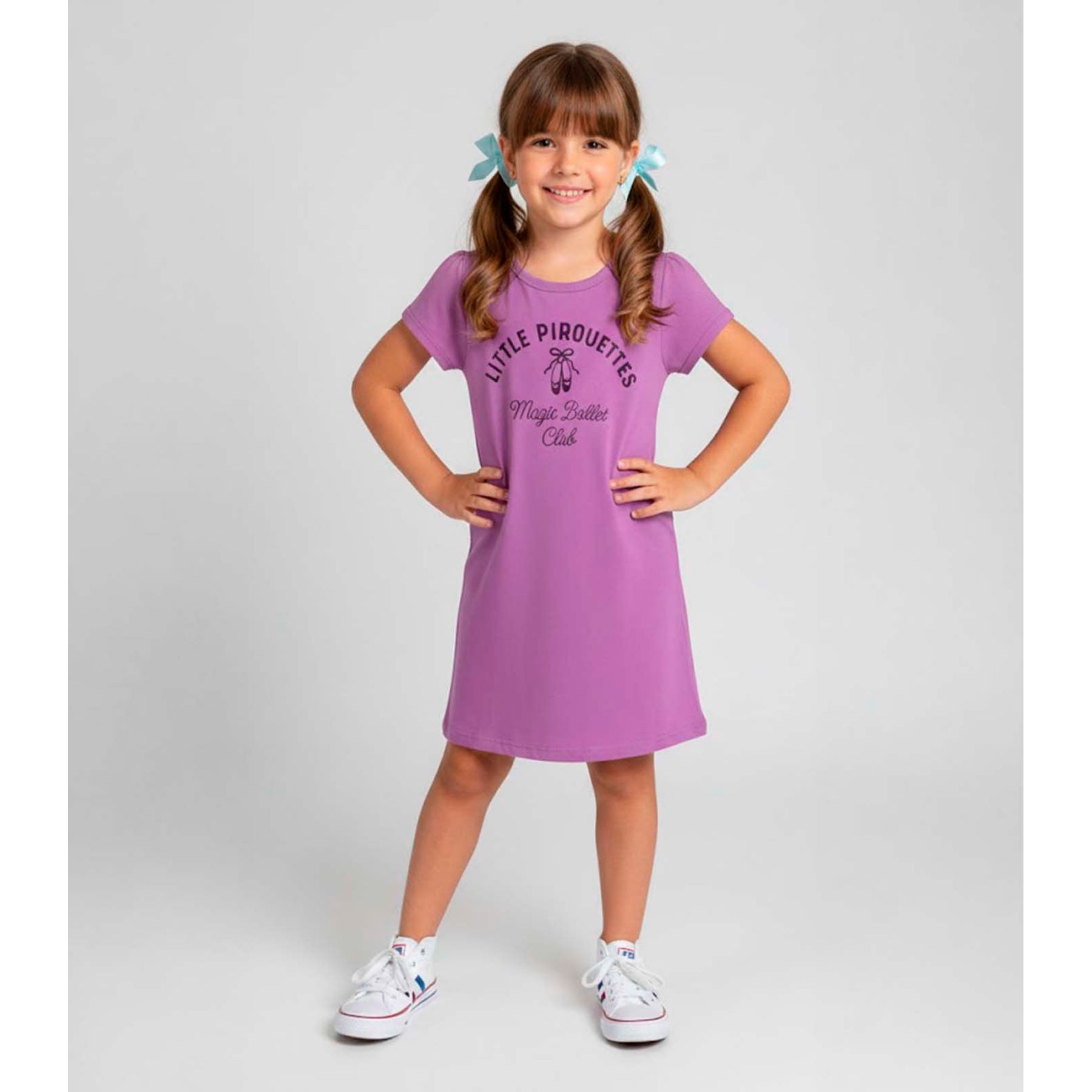 Vestido Infantil Manga Curta Estampado Select Roxo