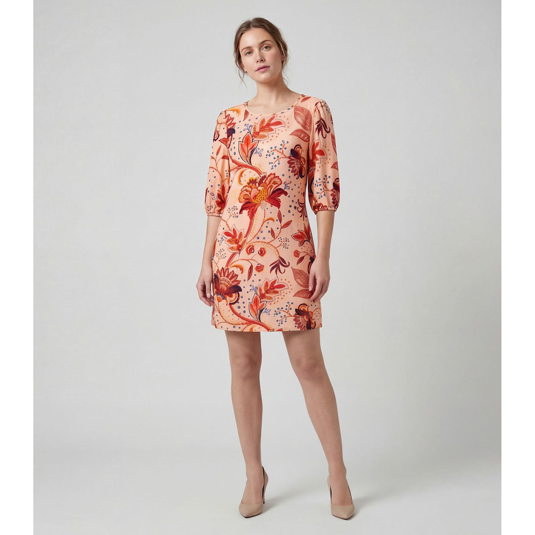 Vestido Curto Folhagens Marrom - Viva Casual