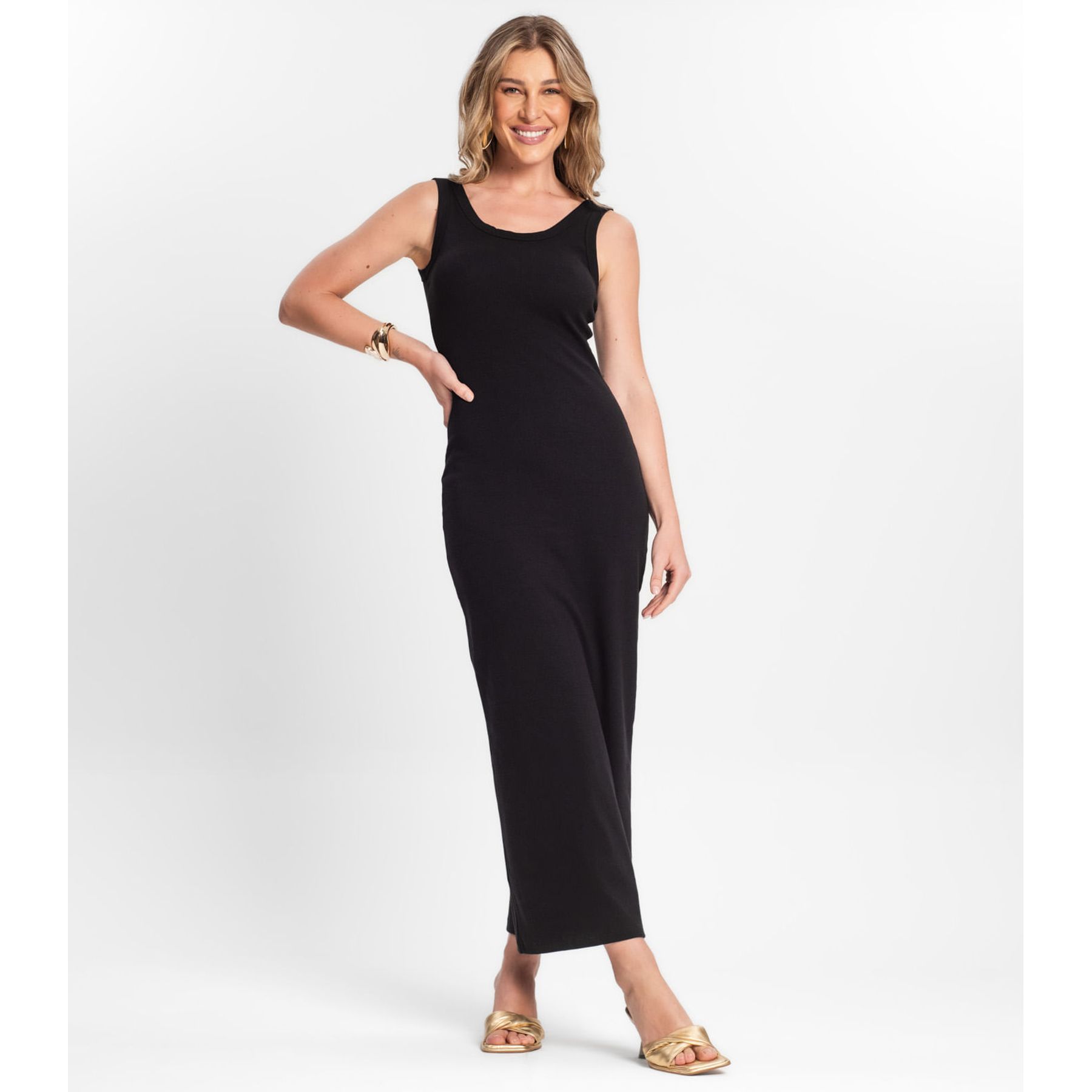 Vestido Longo Sem Mangas Liso Preto - Love Trend