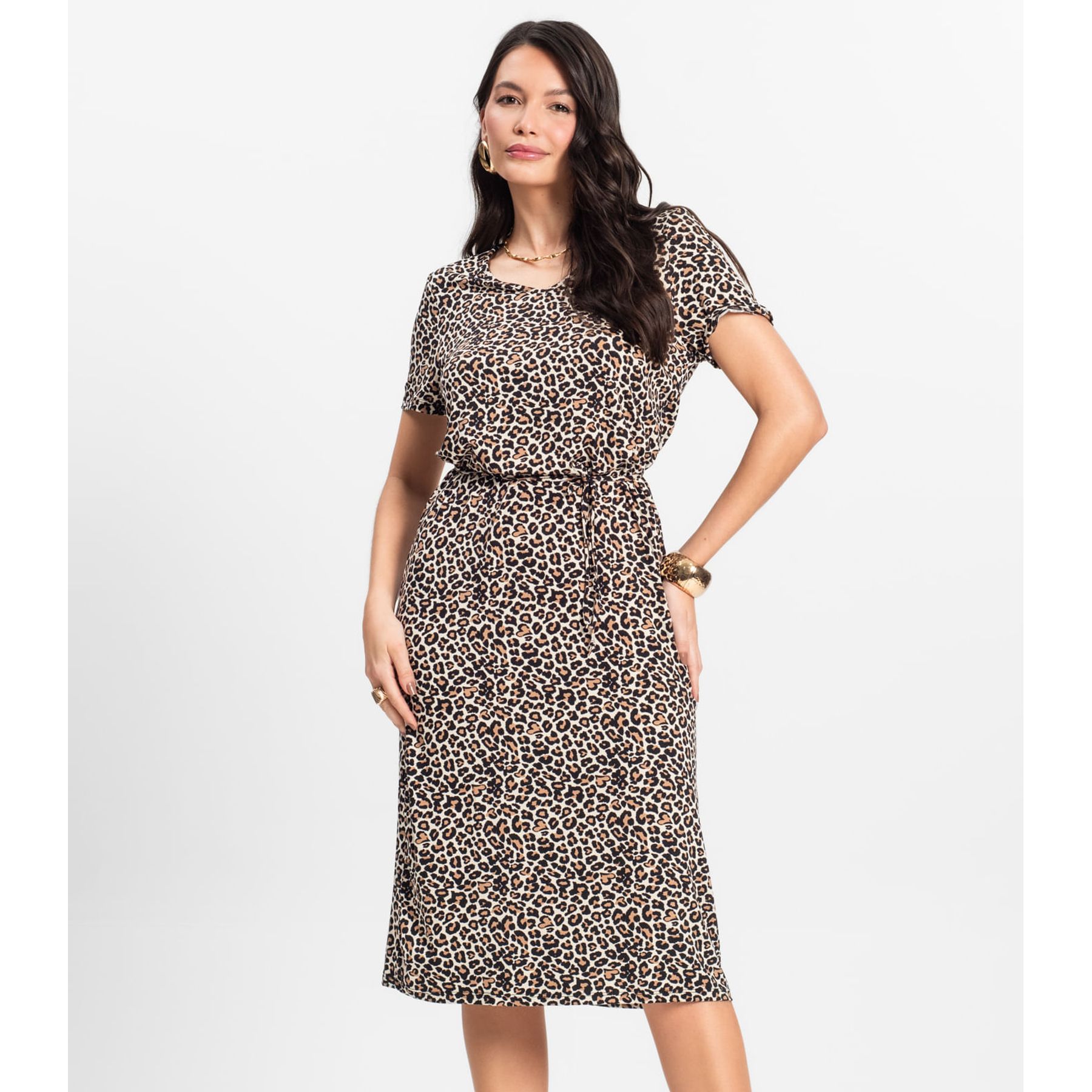 Vestido Feminino Manga Curta com Cinto Estampa Geométrica Preto e Branco - Urbano