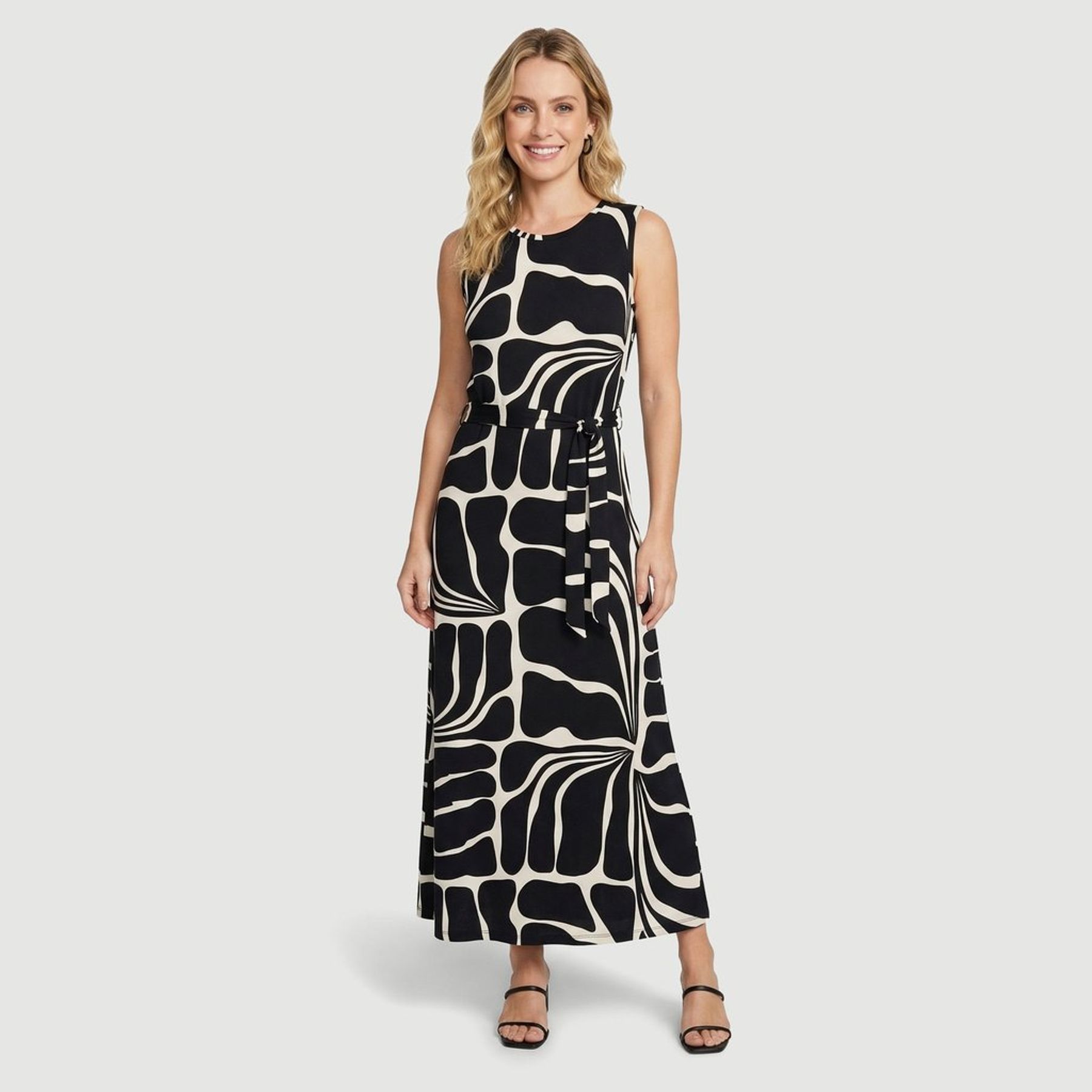 Vestido Super Midi Feminino Visco Maquinetada Preto