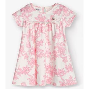 Vestido Infantil Manga Curta Estampado Biju Kids Rosa