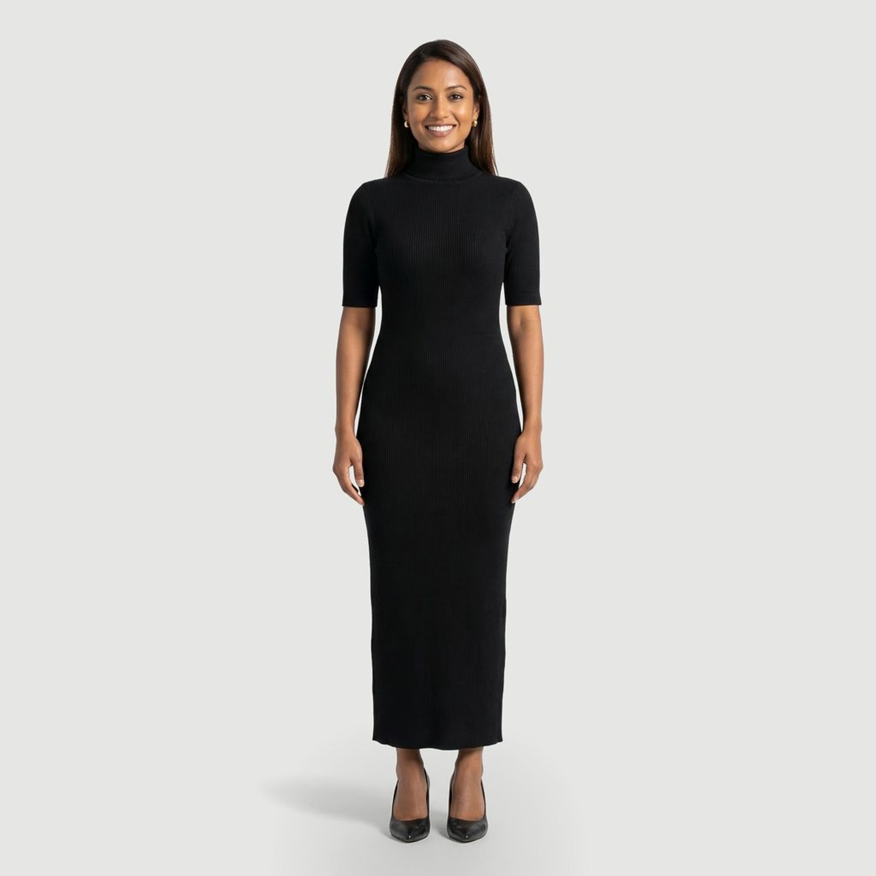 Vestido Midi Feminino Gola Dupla Dianna Preto