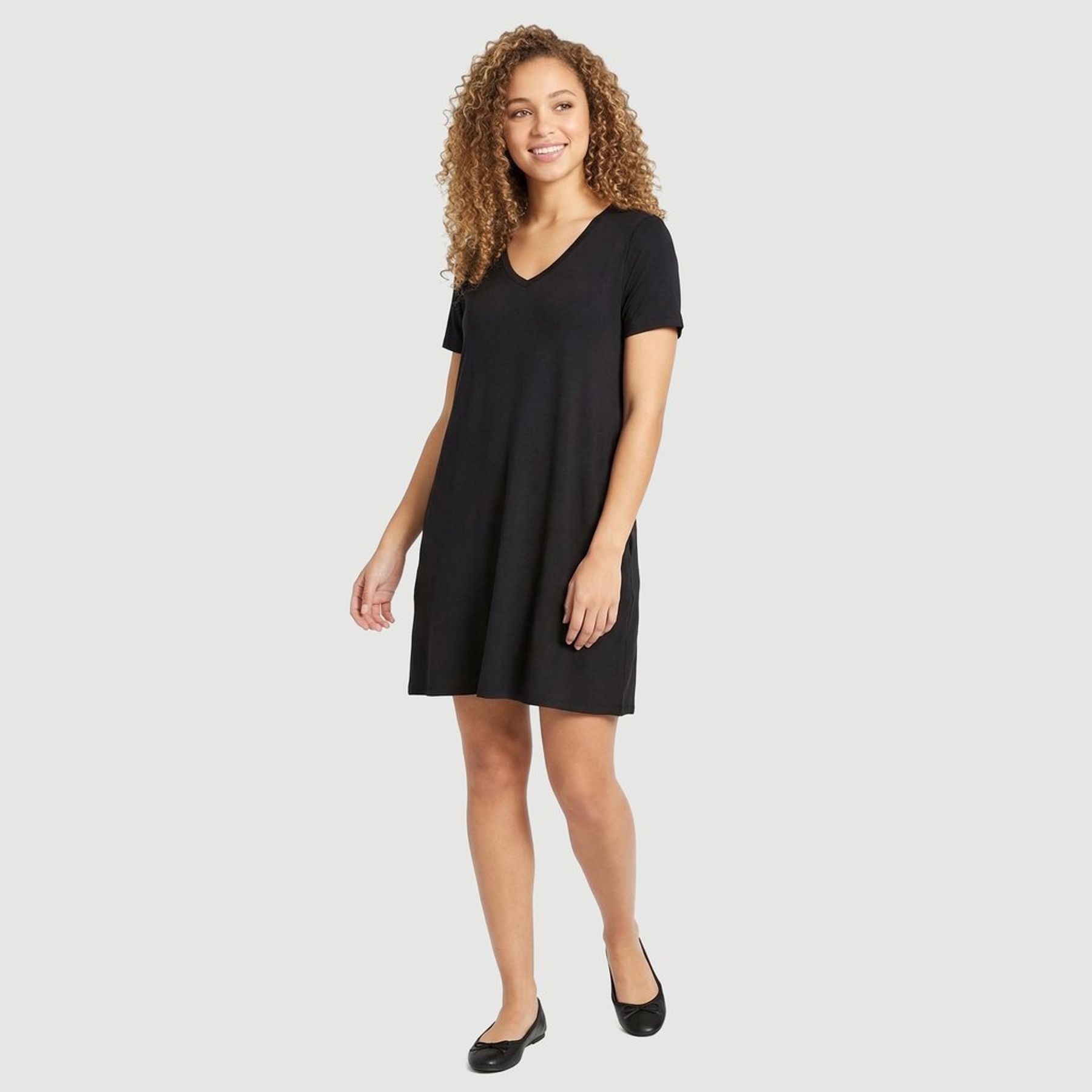 Vestido Curto Visco Maquinetada Feminino Rovitex Preto