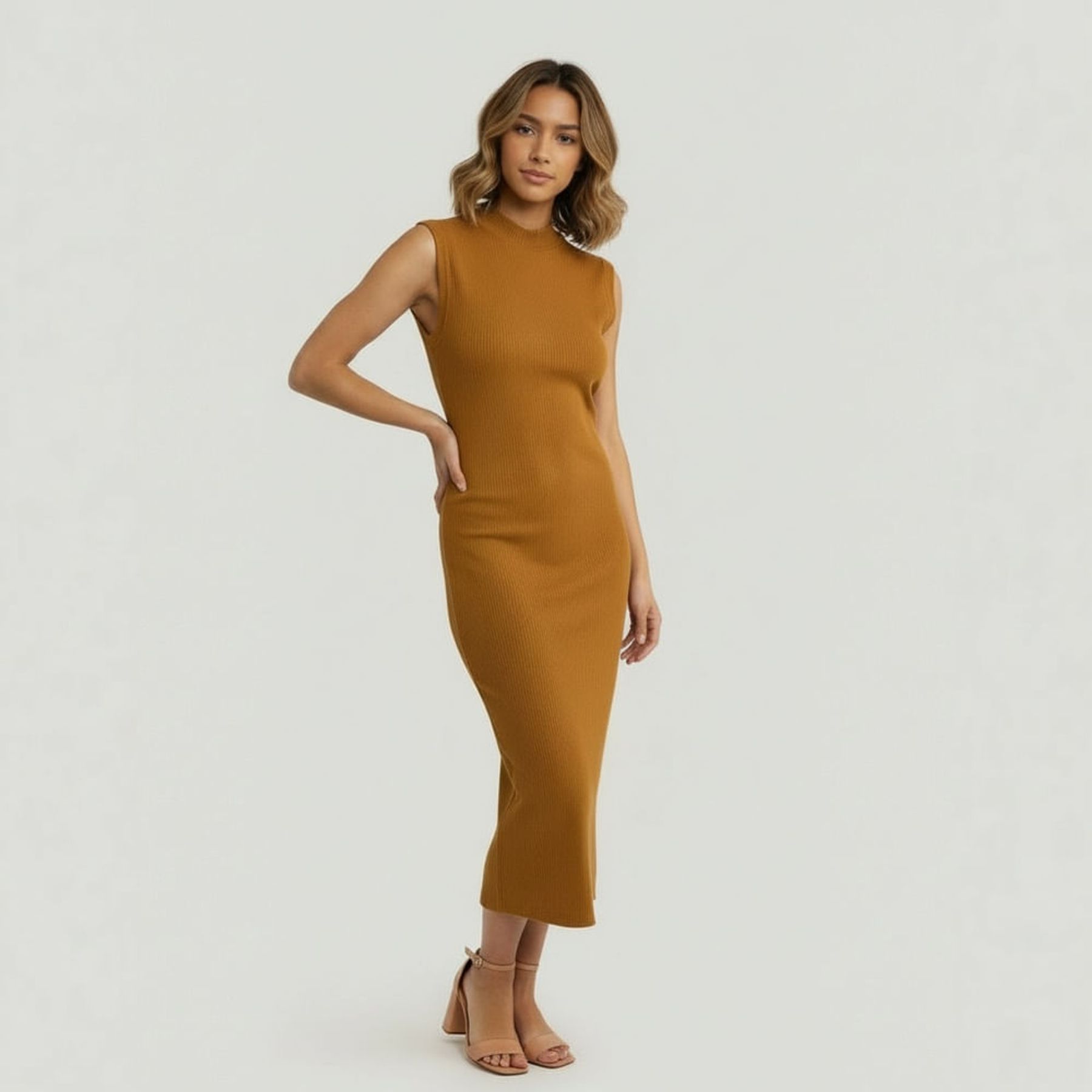 Economia de R$ 64,00Vestido feminino em malha circular, ideal para quem busca praticidade e elegância para diferentes situações do cotidiano. Com modelagem sem manga, gola levemente alta e acabamento liso na cor caramelo, oferece toque macio e excelente caimento graças à predominância de viscose em sua composição. Uma peça-chave para compor looks versáteis em qualquer estação.
