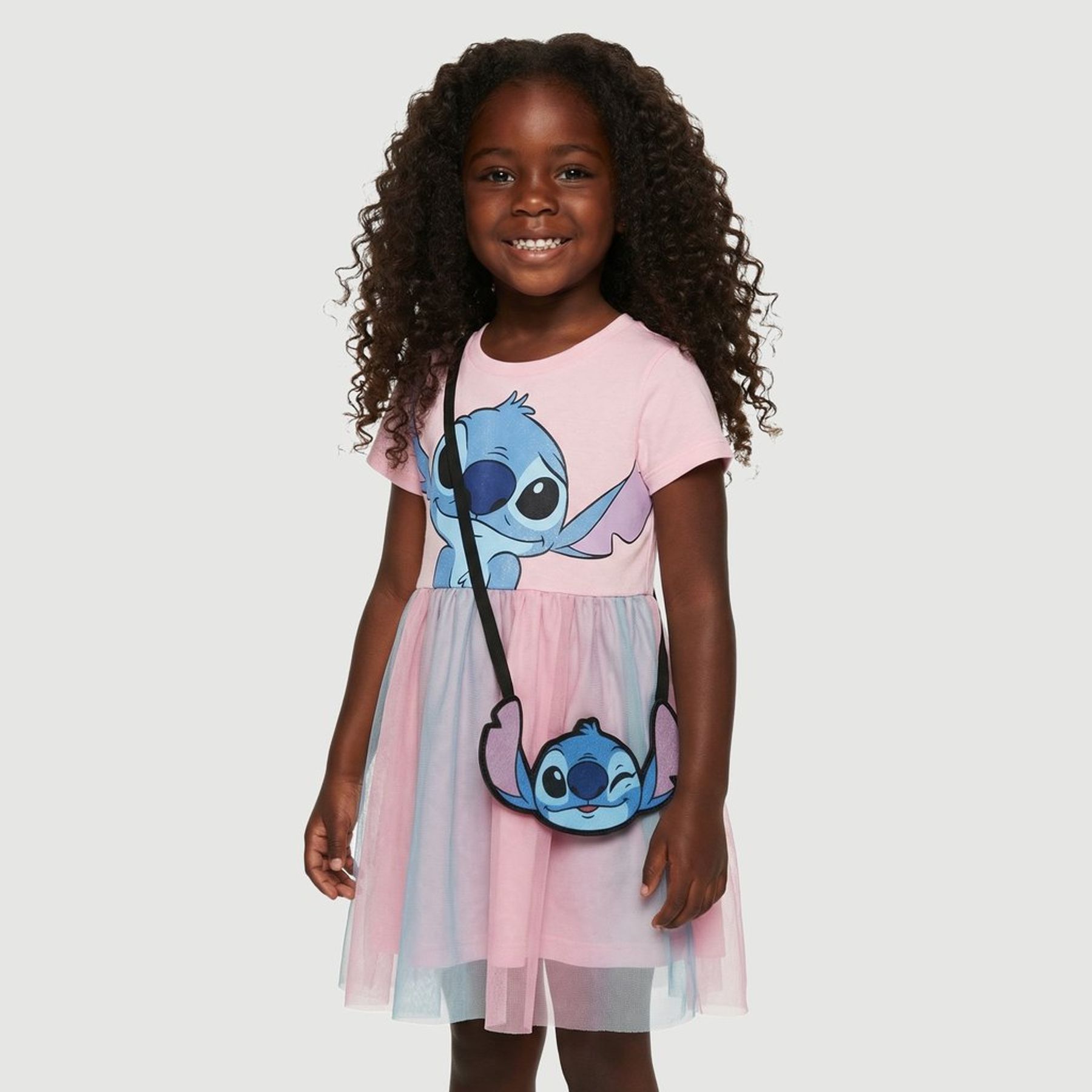 Vestido Infantil Manga Curta com Tule Stitch Azul - Disney